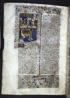 New York, Public Library, Spencer 33, f. 66v. Semiamira si prostituisce; Semiamira appare in Senato al fianco del figlio, l'imperatore Antonio (Eliogabalo); Semiamira presiede il s…