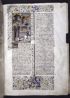 New York, Public Library, Spencer 33, f. 28r. Atalia, regina di Gerusalemme, ordina il massacro di tutti i discendenti maschi della stirpe di David; Ioas viene incoronato re di Giu…