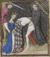 Parigi, Bibliothèque Nationale de France, Fr. 598, f. 78r. Atalia, regina di Gerusalemme, ordina il massacro di tutti i discendenti maschi della stirpe di David; Atalia viene conda…