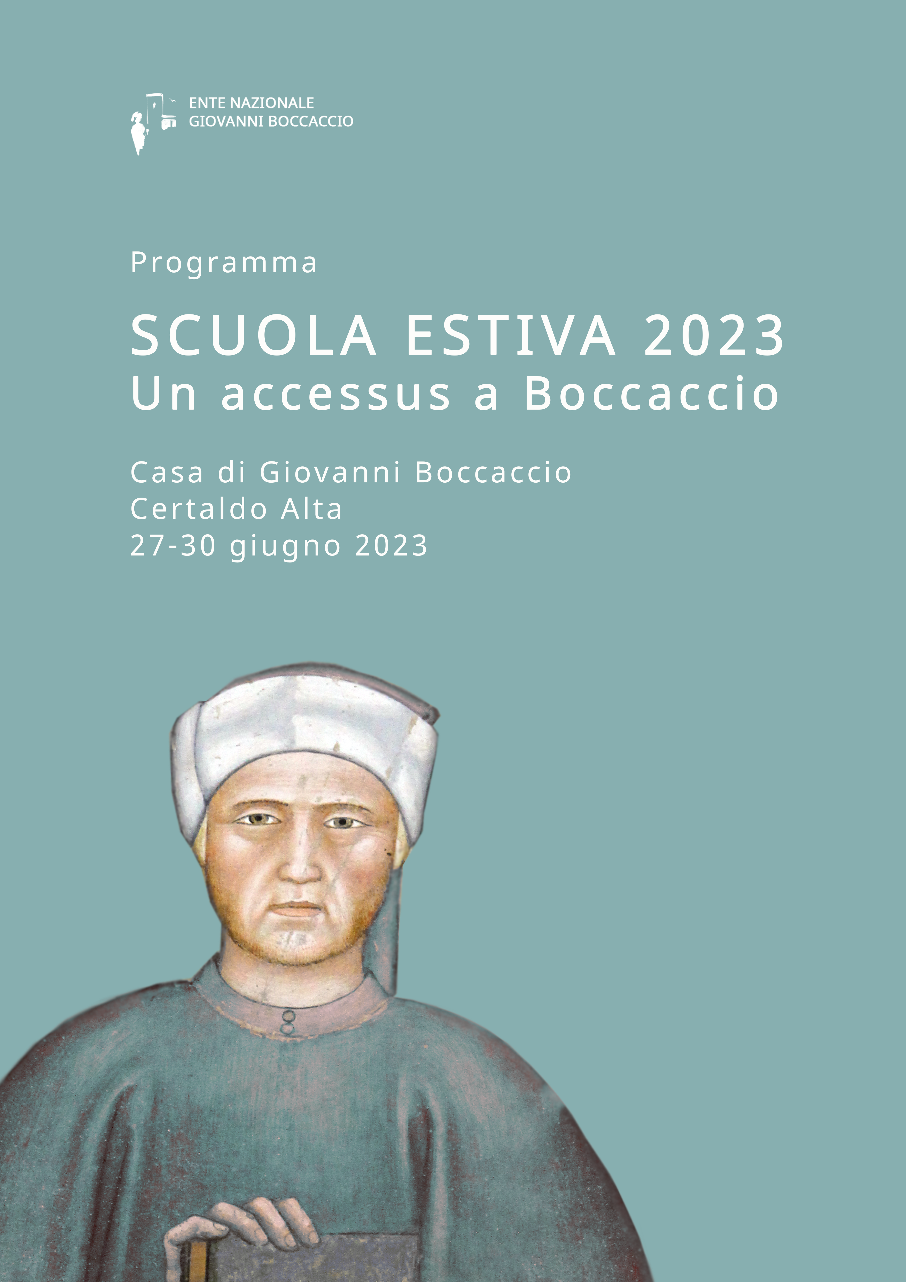 L’Ente Nazionale Giovanni Boccaccio organizza a Certaldo, nella casa di Giovanni Boccaccio, una Scuola estiva rivolta a studiosi in formazione e dedicata all’opera di Giovanni Boccaccio, alla sua fortuna, agli strumenti critici per la sua interpretazione. Essa prevede lo scambio e l’acquisizione di metodi e problemi legati alla ricerca, in un ambito multidisciplinare di carattere letterario, filologico, linguistico, paleografico-codicologico, storico-artistico, in grado di offrire un’occasione di riflessione critica, di formazione metodologica, di aggiornamento storiografico.