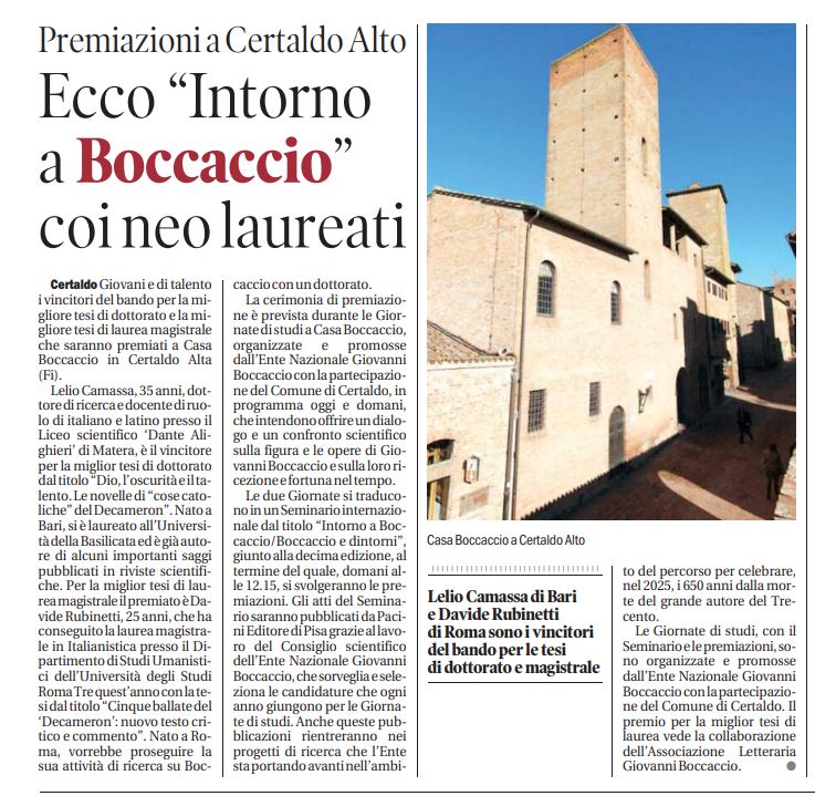 Giornate di studi a Casa Boccaccio (12-13 settembre 2023) Rassegna stampa Collezione: Rassegna Stampa