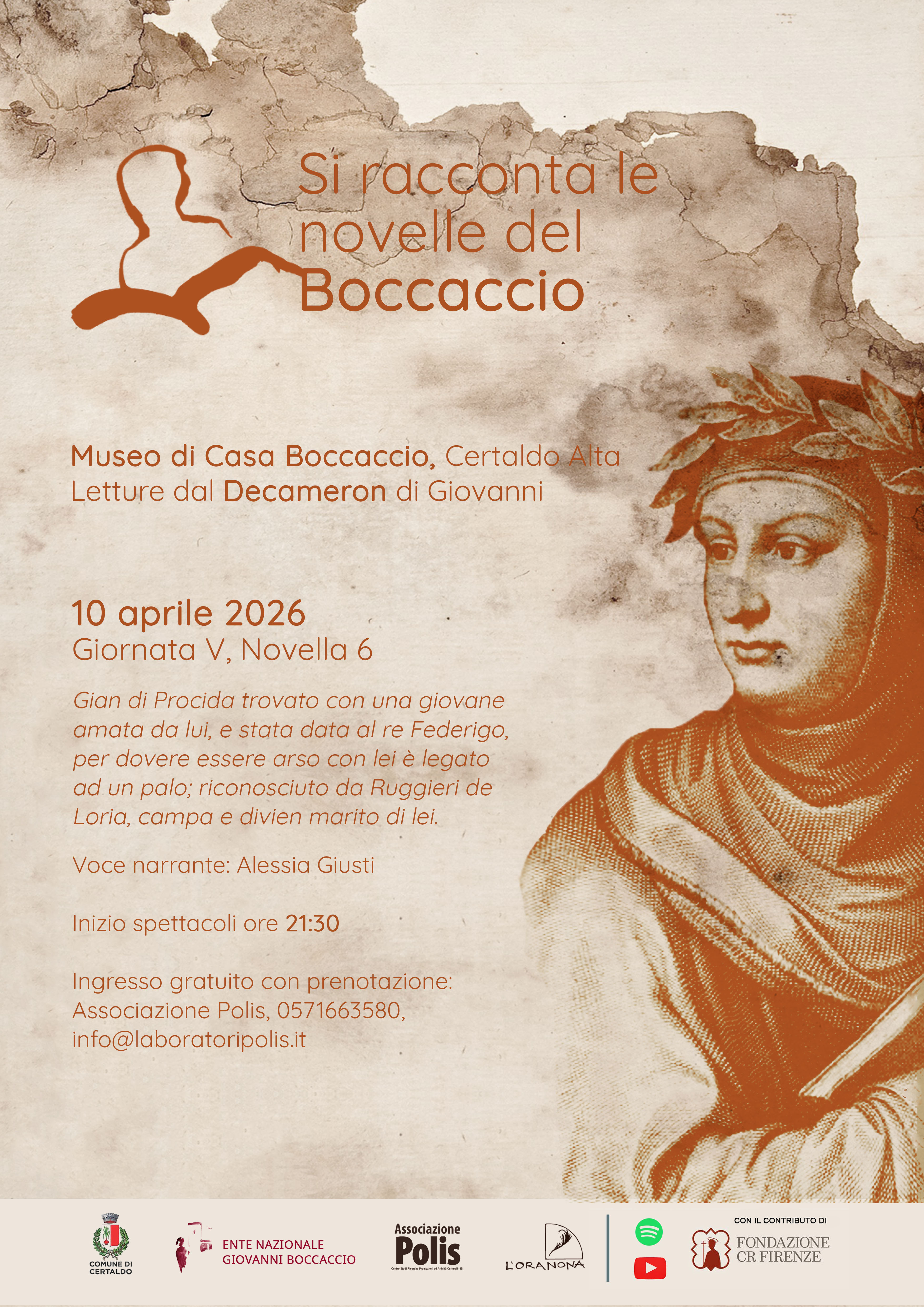 Rassegna annuale di letture del Decameron a cura della compagnia teatrale “L’Oranona Teatro”, con il contributo e la collaborazione dell'Ente Nazionale Giovanni Boccaccio, in scena ogni secondo venerdì del mese in Casa Boccaccio.