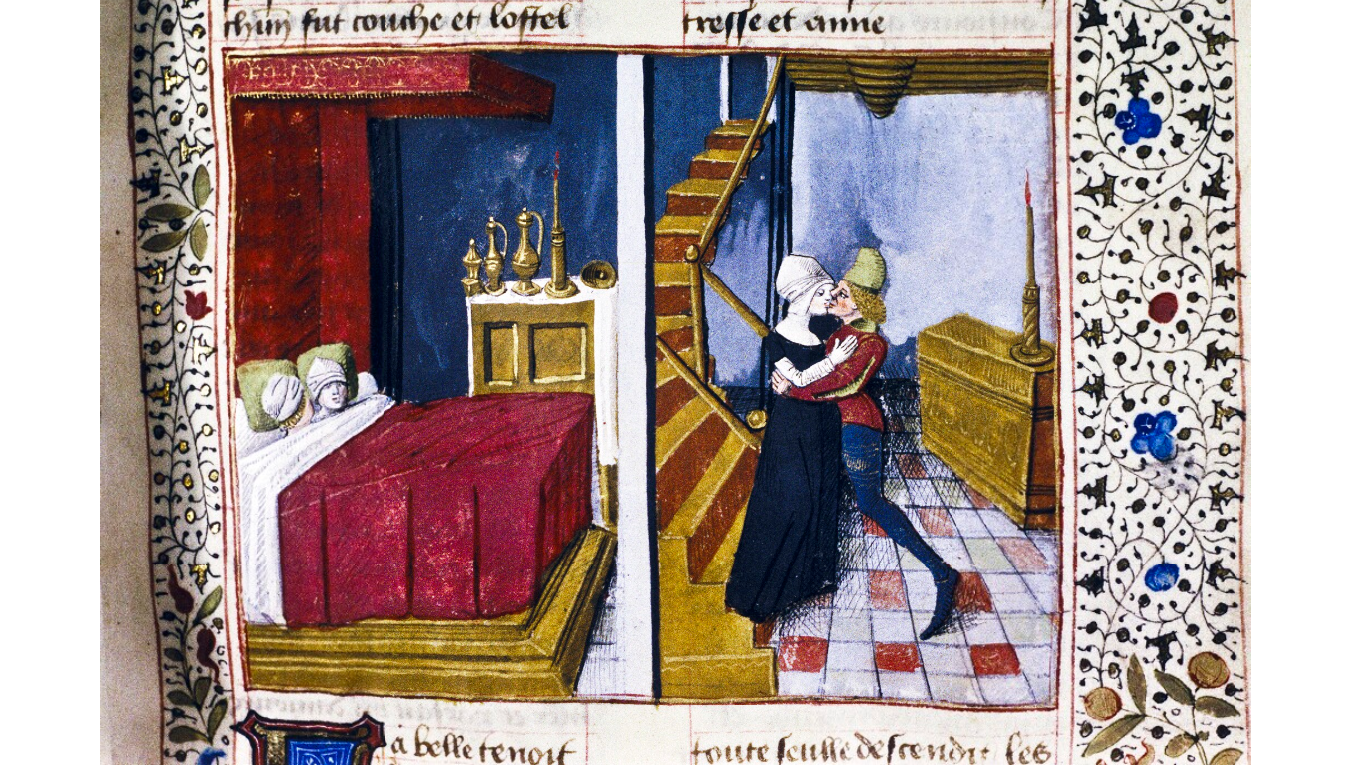 Miniatore francese (1480 c.), Troiolo bacia Criseide; i due amanti giacciono insieme