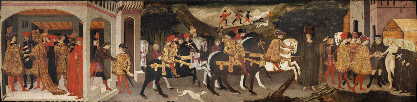 Apollonio di Giovanni (1440 c.), Gualtieri di Saluzzo concede un'udienza ai propri sudditi; Gualtieri incontra Griselda di ritorno dalla fonte; Gualtieri sposa Griselda