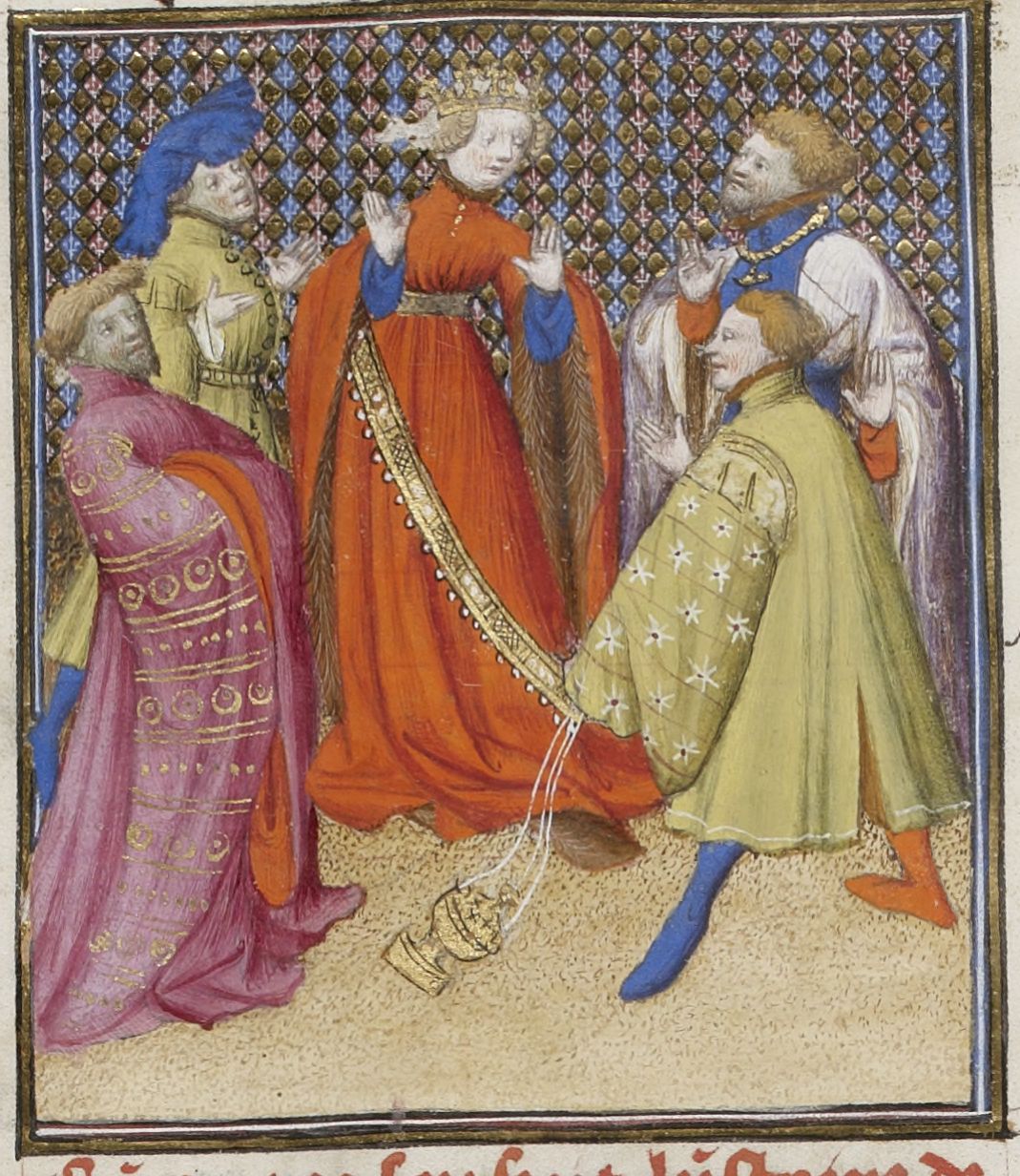 Parigi, Bibliothèque Nationale de France, Fr. 598, f. 15v. La dea Venere è circondata e onorata dai suoi ammiratori.