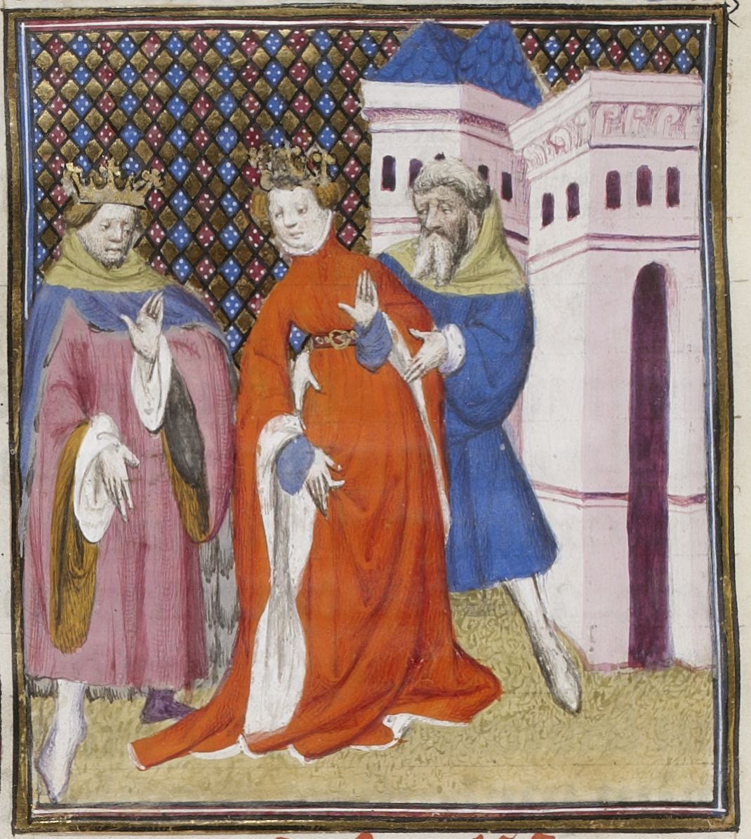 Parigi, Bibliothèque Nationale de France, Fr. 598, f. 22v. Ipermestra viene condotta in prigione per ordine del padre Danao.