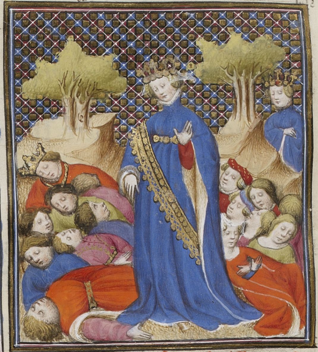 Maestro delle Clères Femmes e collaboratore (1403 c.), Niobe piange sui corpi della sua famiglia