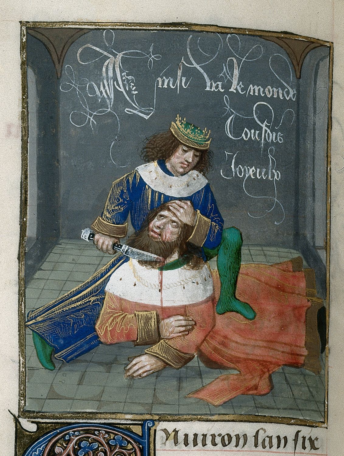 Londra, British Library, Royal 14 E V, f. 313v. Erode viene sgozzato da Fraate.