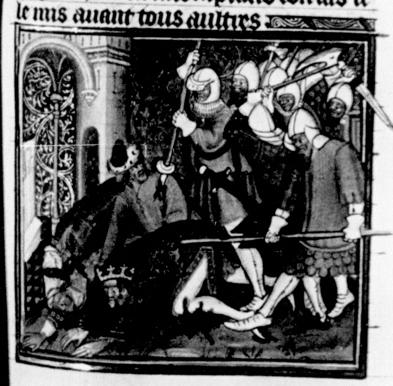 Parigi, Bibliothèque Nationale de France, Fr. 226, f. 137r. Antioco il Grande viene massacrato insieme ai suoi compagni.