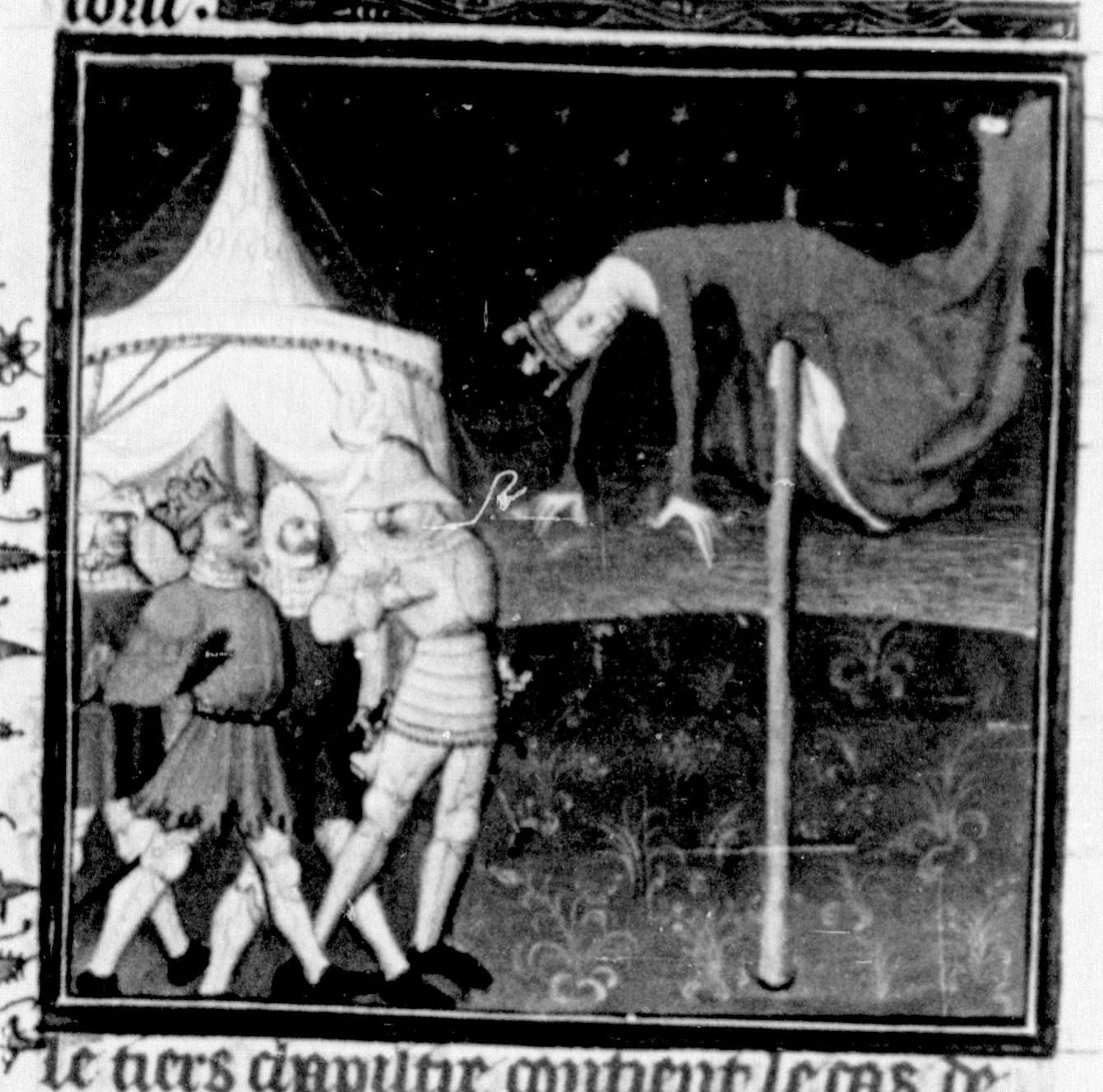 Parigi, Bibliothèque Nationale de France, Fr. 226, f. 249r. Romulda, duchessa del Friuli, viene impalata.