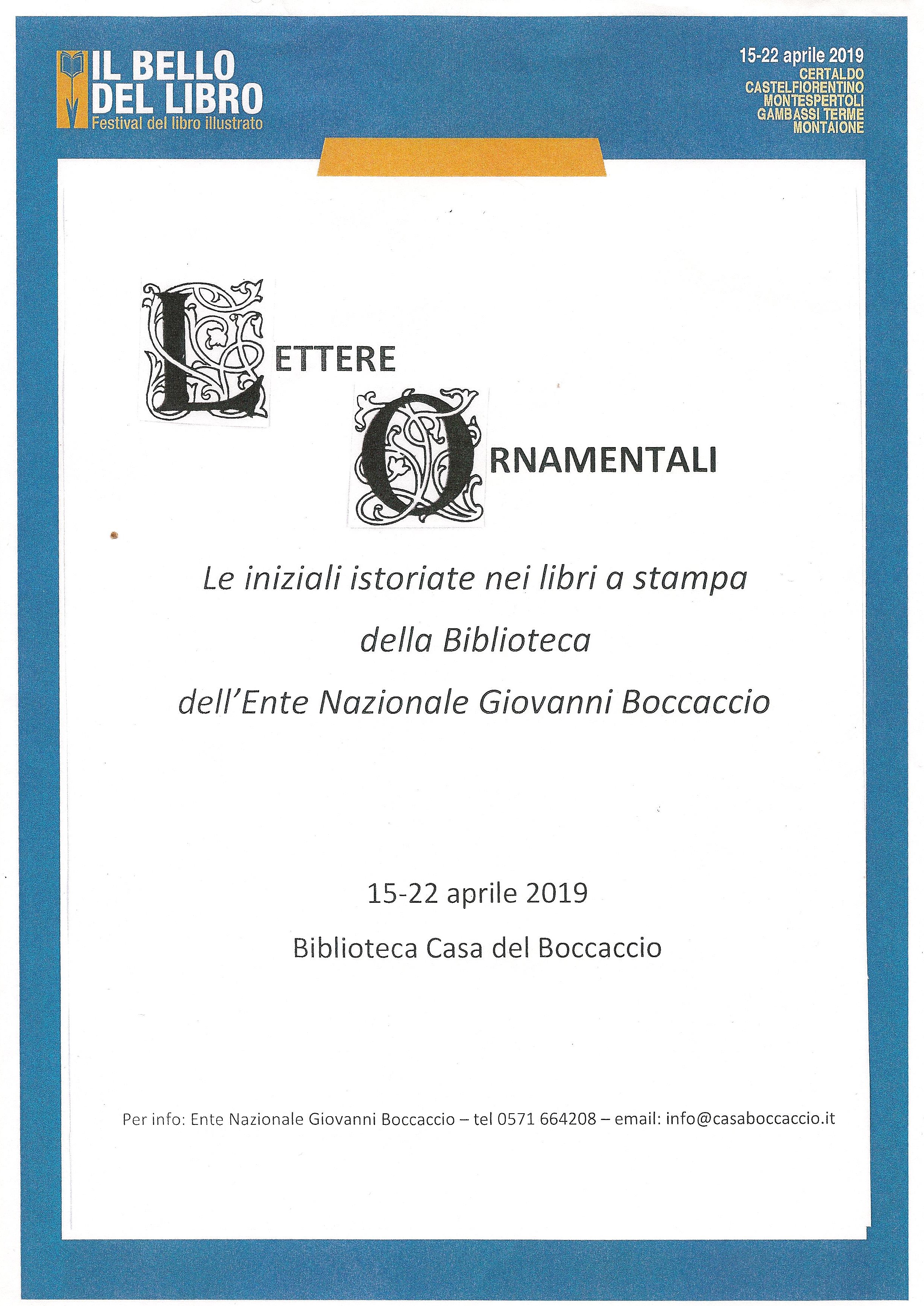 Lettere ornamentali 15 - 22 aprile 2019 Lettere ornamentali Le iniziali istoriate nei libri a stampa della Biblioteca dell'Ente Nazionale Giovanni Boccaccio In orario di apertura del museo