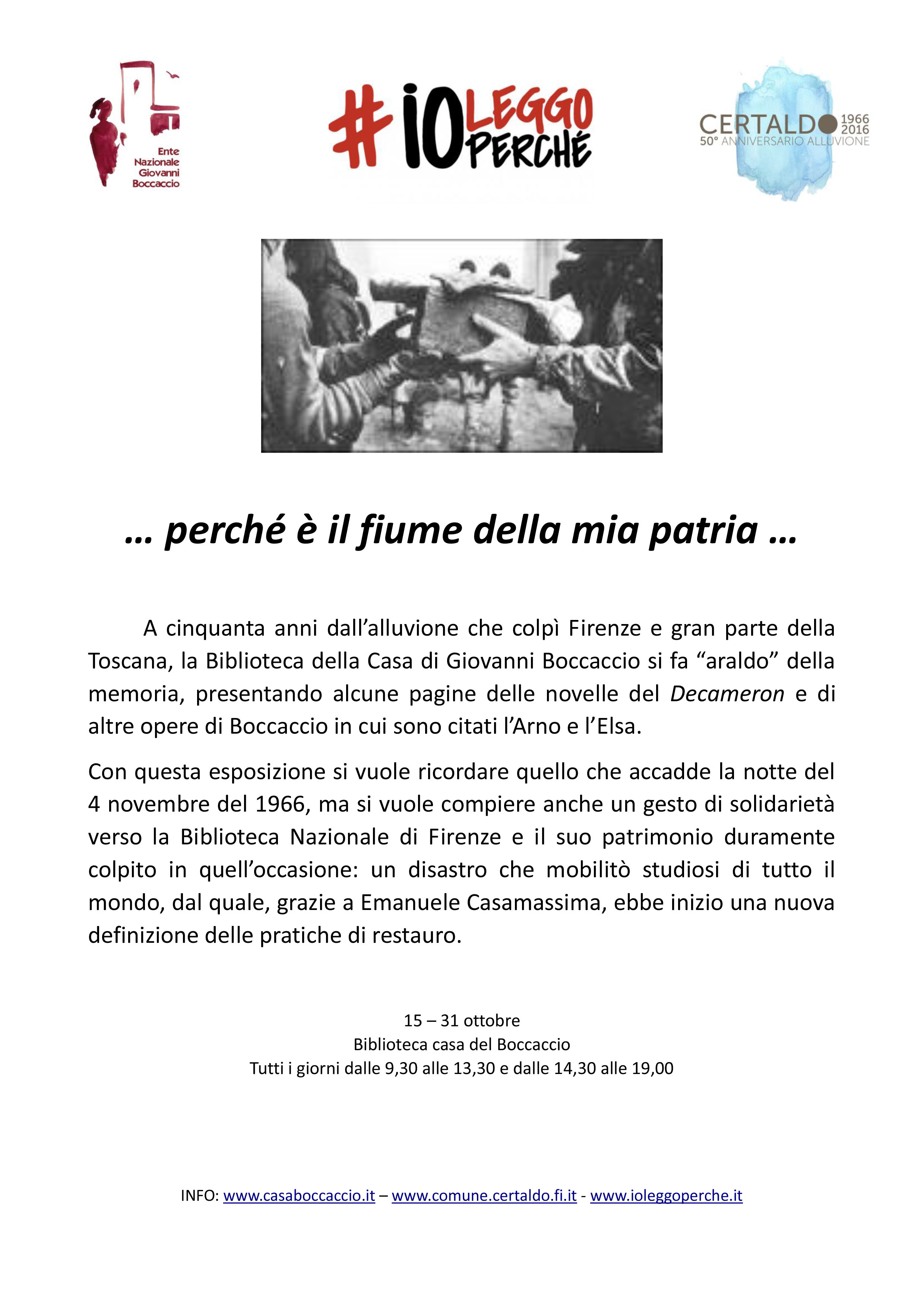 ...perché è il fiume della mia patria 15 - 31 ottobre 2016 ...perché è il fiume della mia patria.. esposizione in occasione del 50° anniversario dell'alluvione di Firenze (1966-2016) In orario di apertura del museo