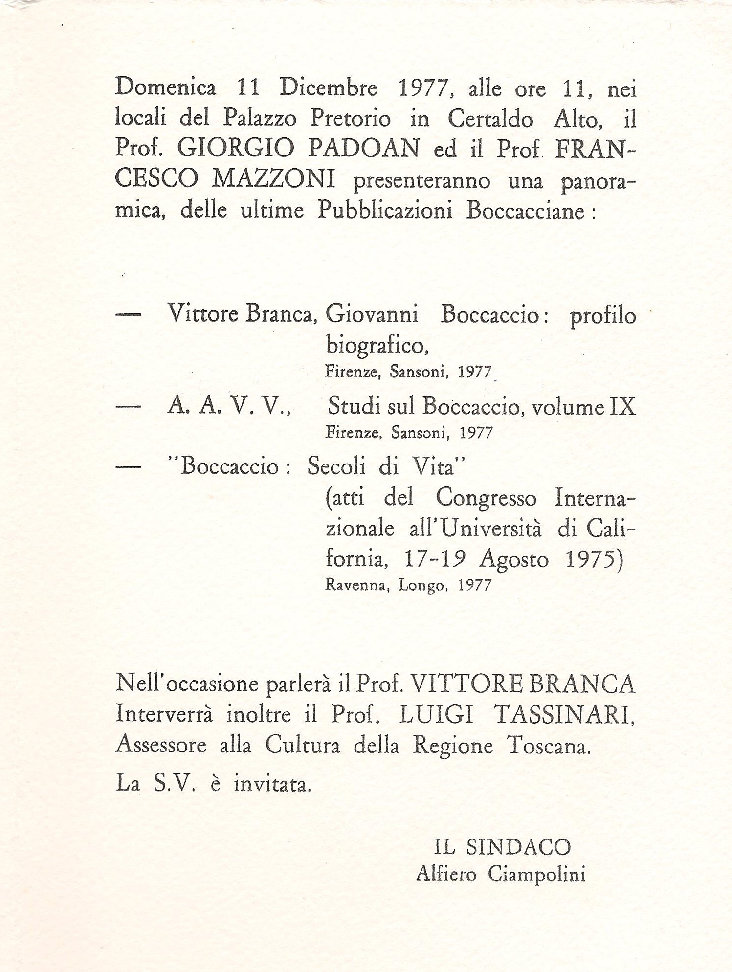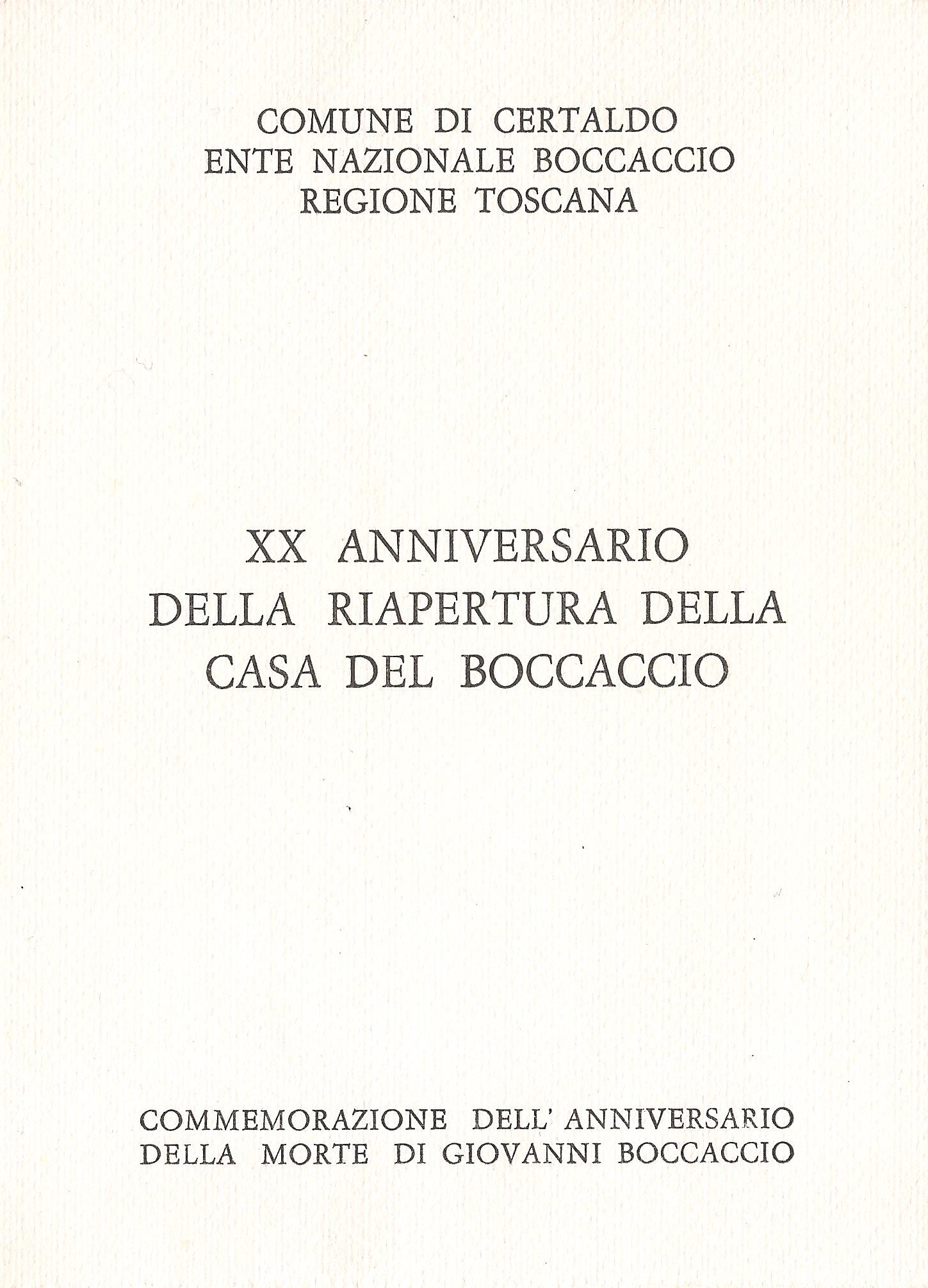 Nel 20° anniversario della riapertura della Casa del Boccaccio e a commemorazione dell'anniversario della morte di Giovanni Boccaccio, presentazione delle pubblicazioni